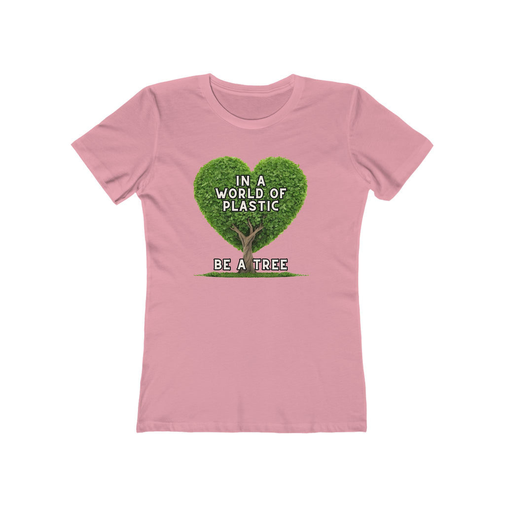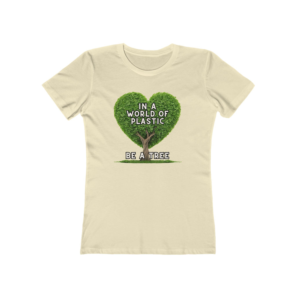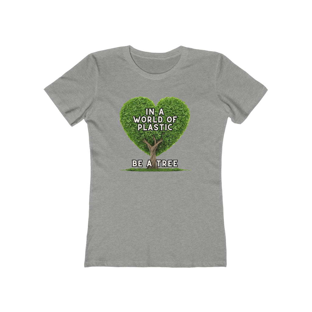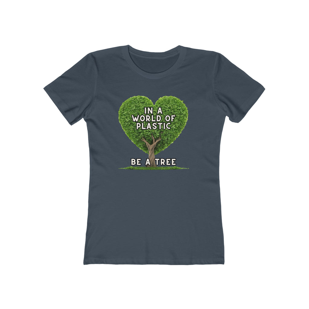 In A World of Plastic, Be A Tree Eco-Friendly Boyfriend Tee for Women - Sustainable Fashion, Nature Lover Gift, Environmental Awareness Tee, Casual