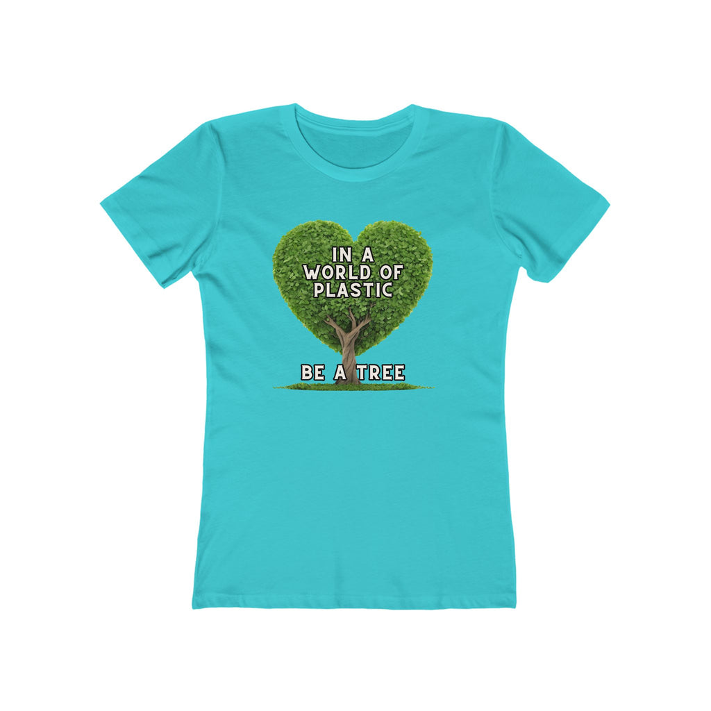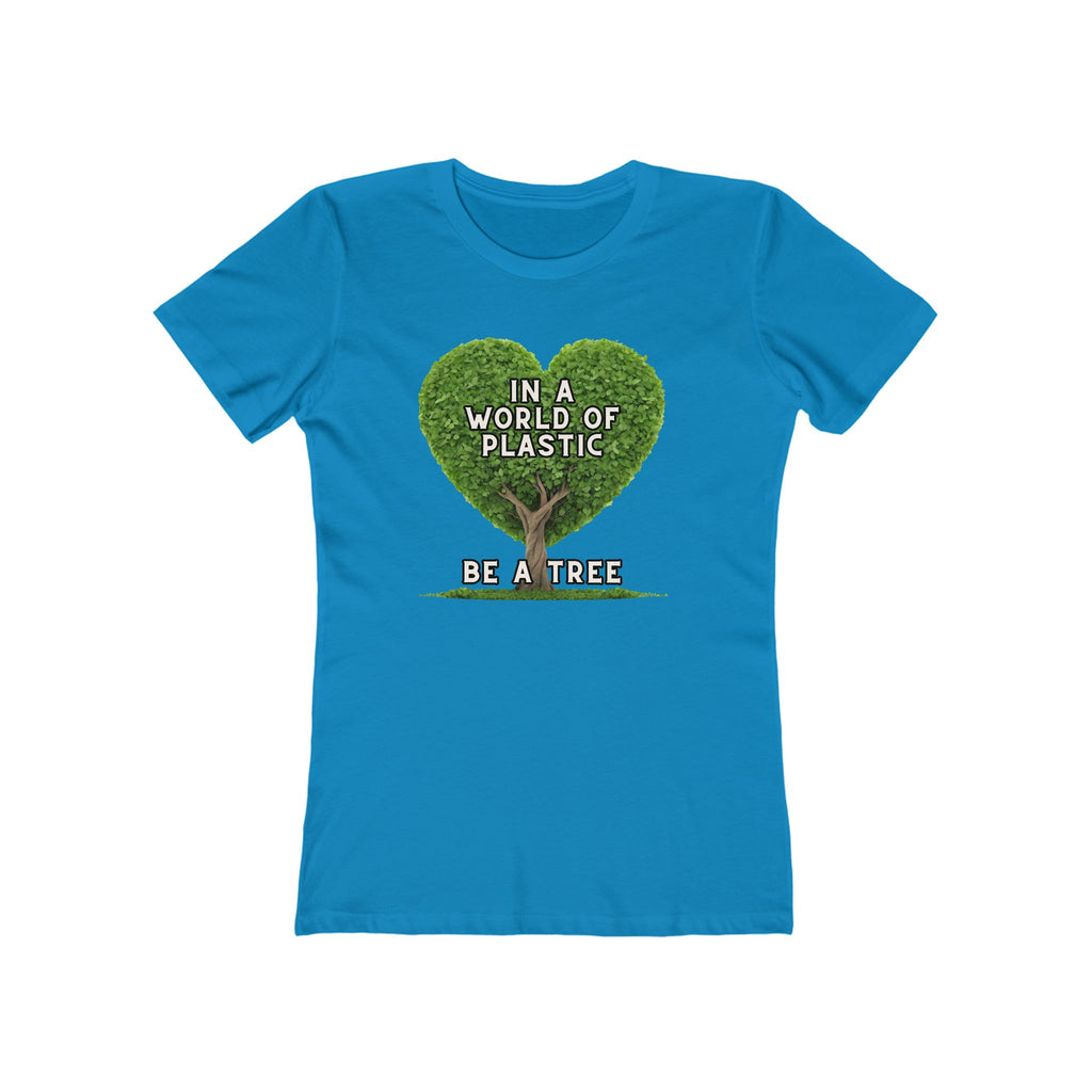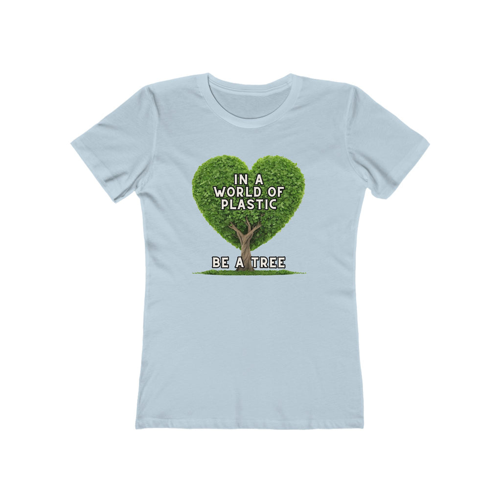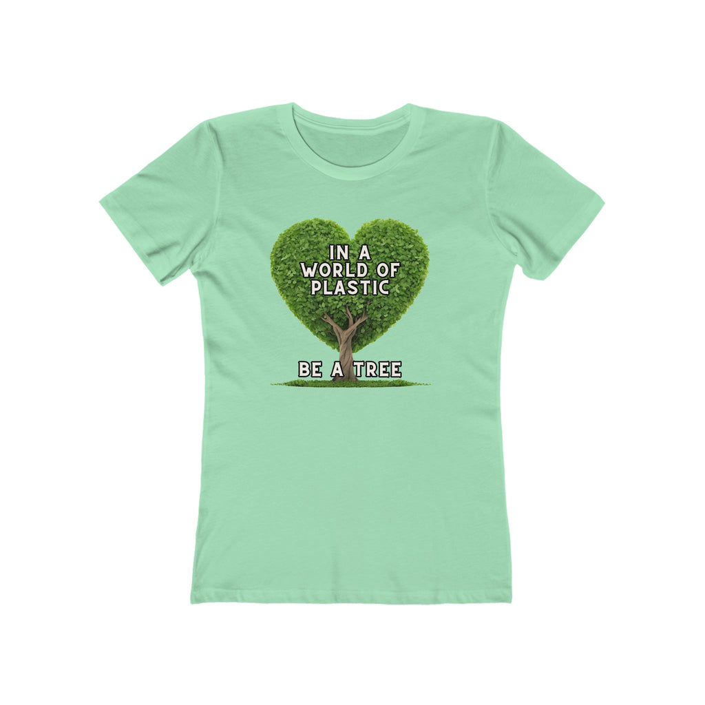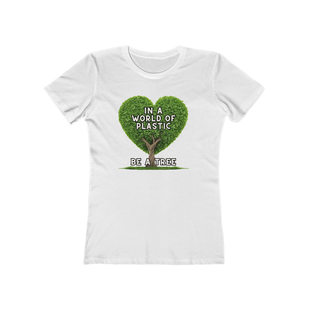 In A World of Plastic, Be A Tree Eco-Friendly Boyfriend Tee for Women - Sustainable Fashion, Nature Lover Gift, Environmental Awareness Tee, Casual